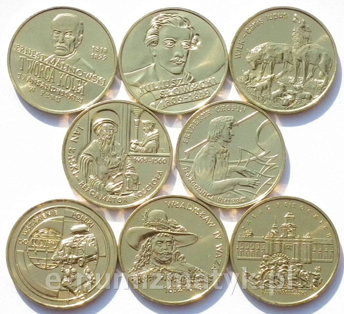 Komplet 8 monet 2 zł NG z 1999 zawiera następujące monety: