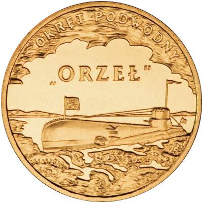 Druga moneta z serii Polskie okręty z wizerunkiem słynnego okrętu podwodnego "Orzeł".